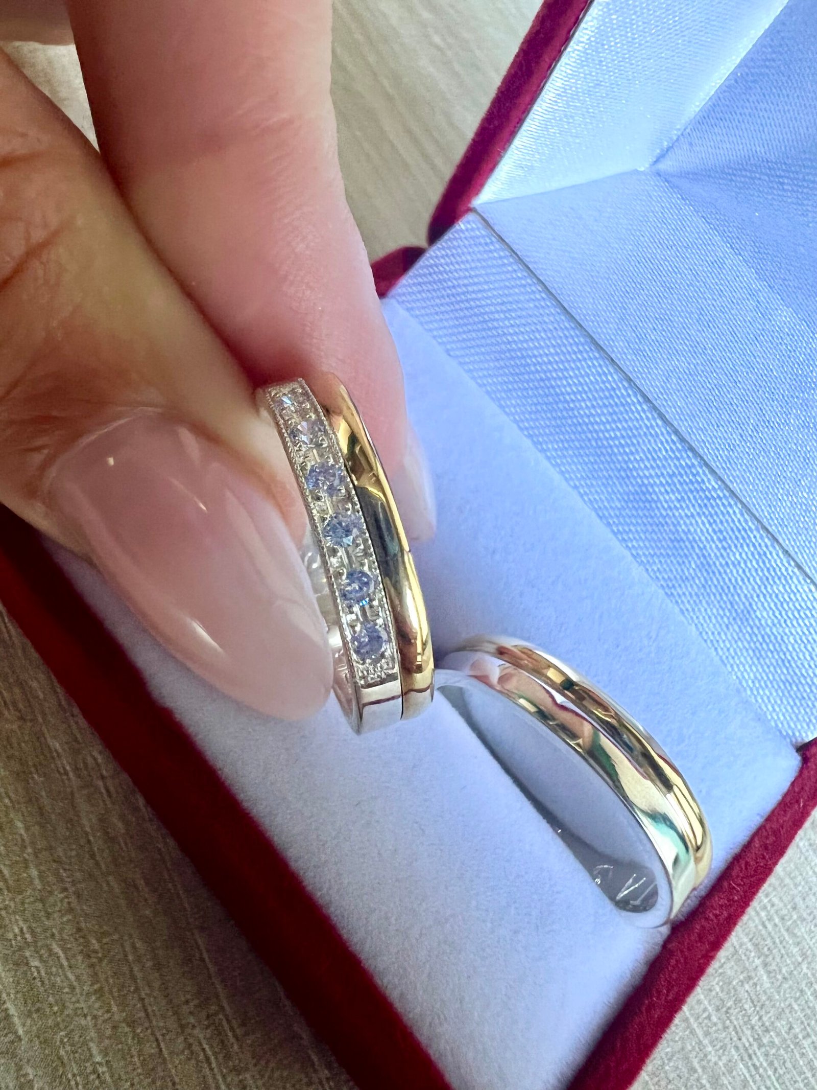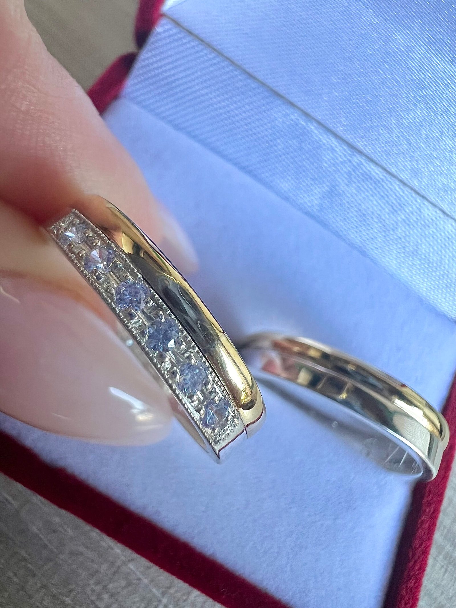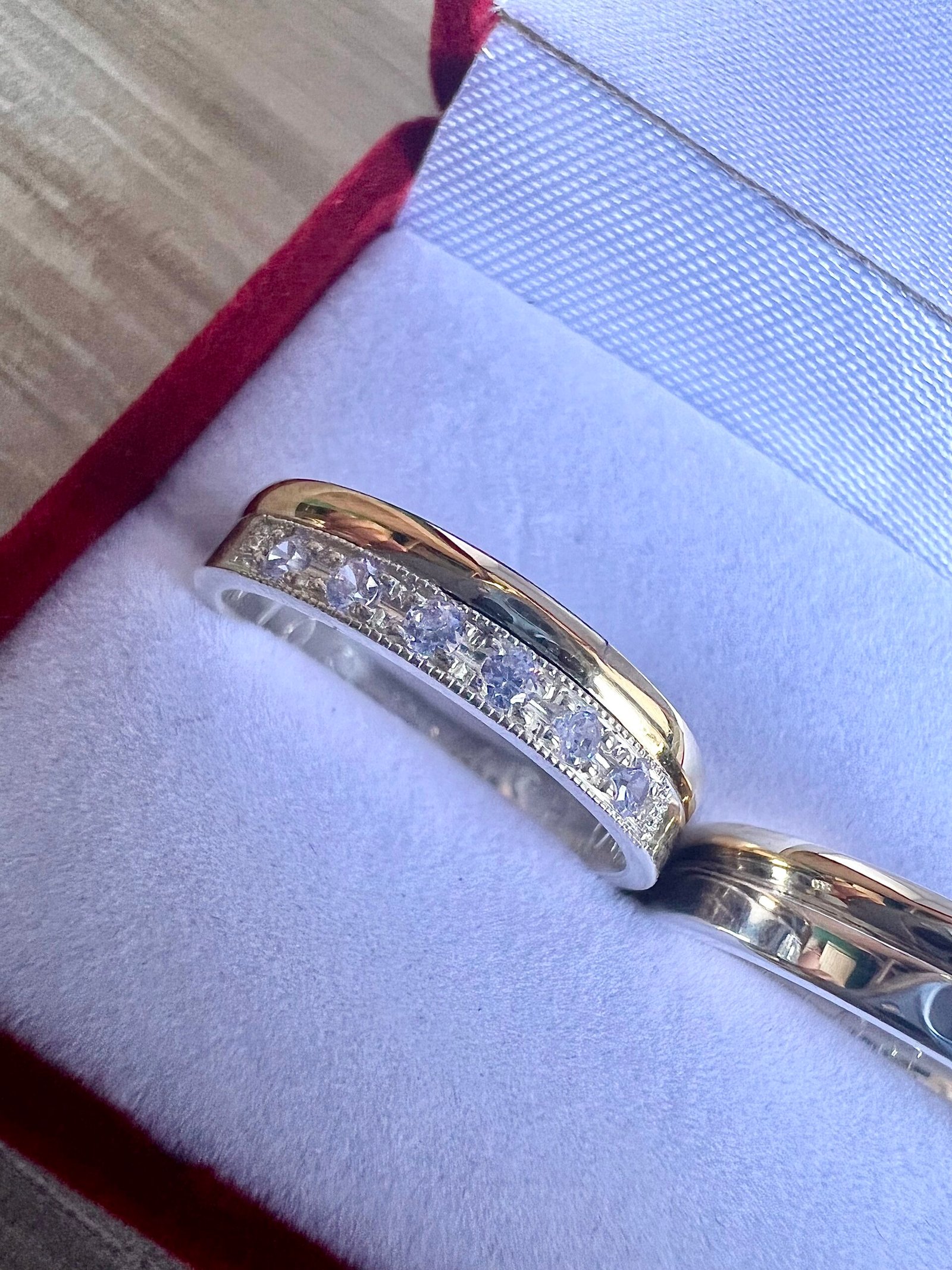 El valor publicado corresponde al par de alianzas con engarce de seis piedras color a elección en una de las alianzas.
