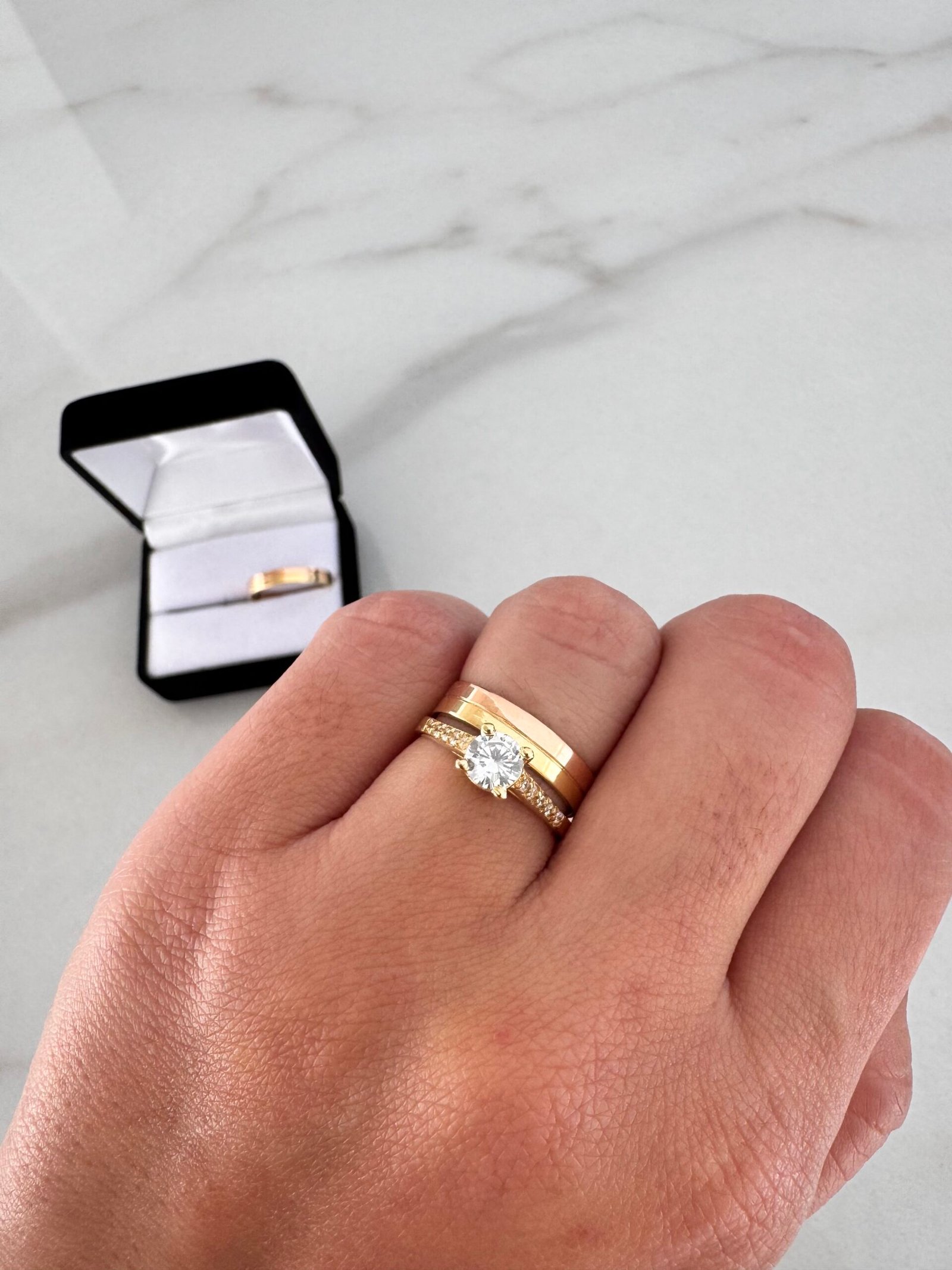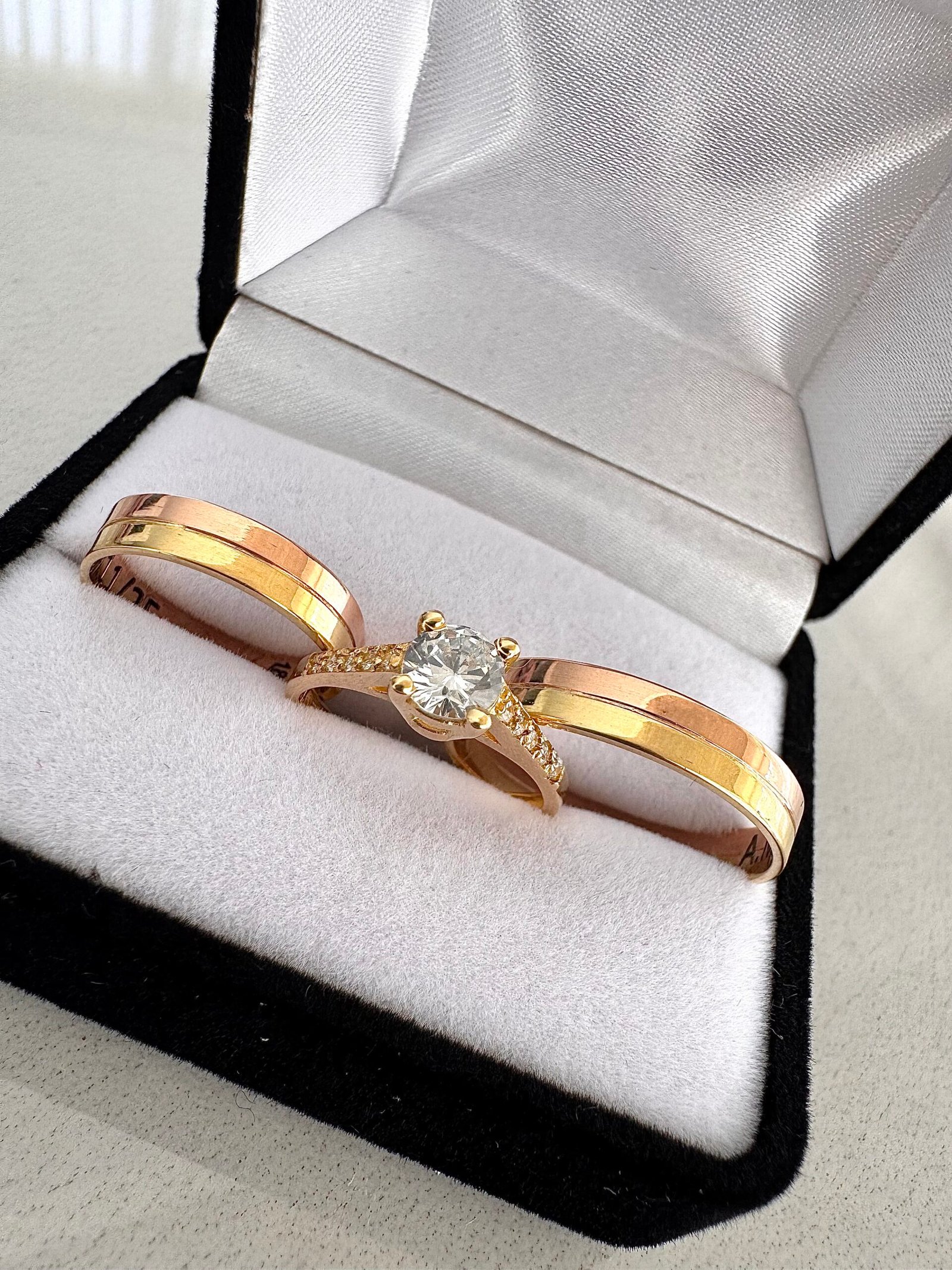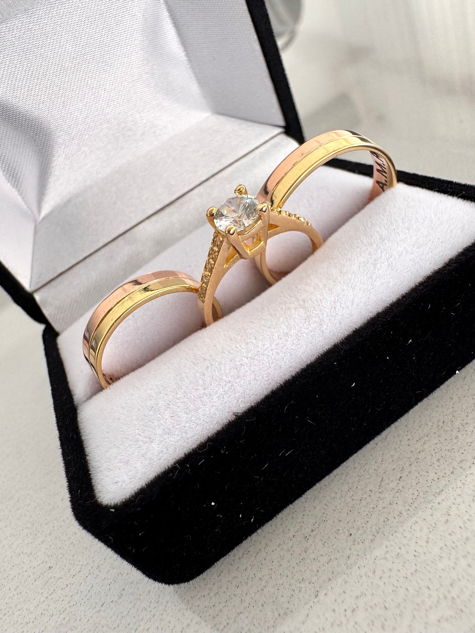 El valor publicado corresponde a un cintillo realizado en Oro18k y piedras Cubic + par de alianza en Oro18k.