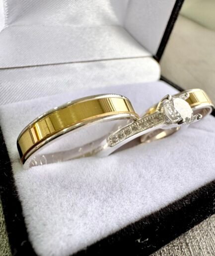 El valor publicado corresponde al par de alianzas con engarce de seis piedras color a elección + cintillo. Modelo de cintillo sujeto a stock, en caso de no haber disponibilidad se le ofrecerá al cliente un diseño similar.