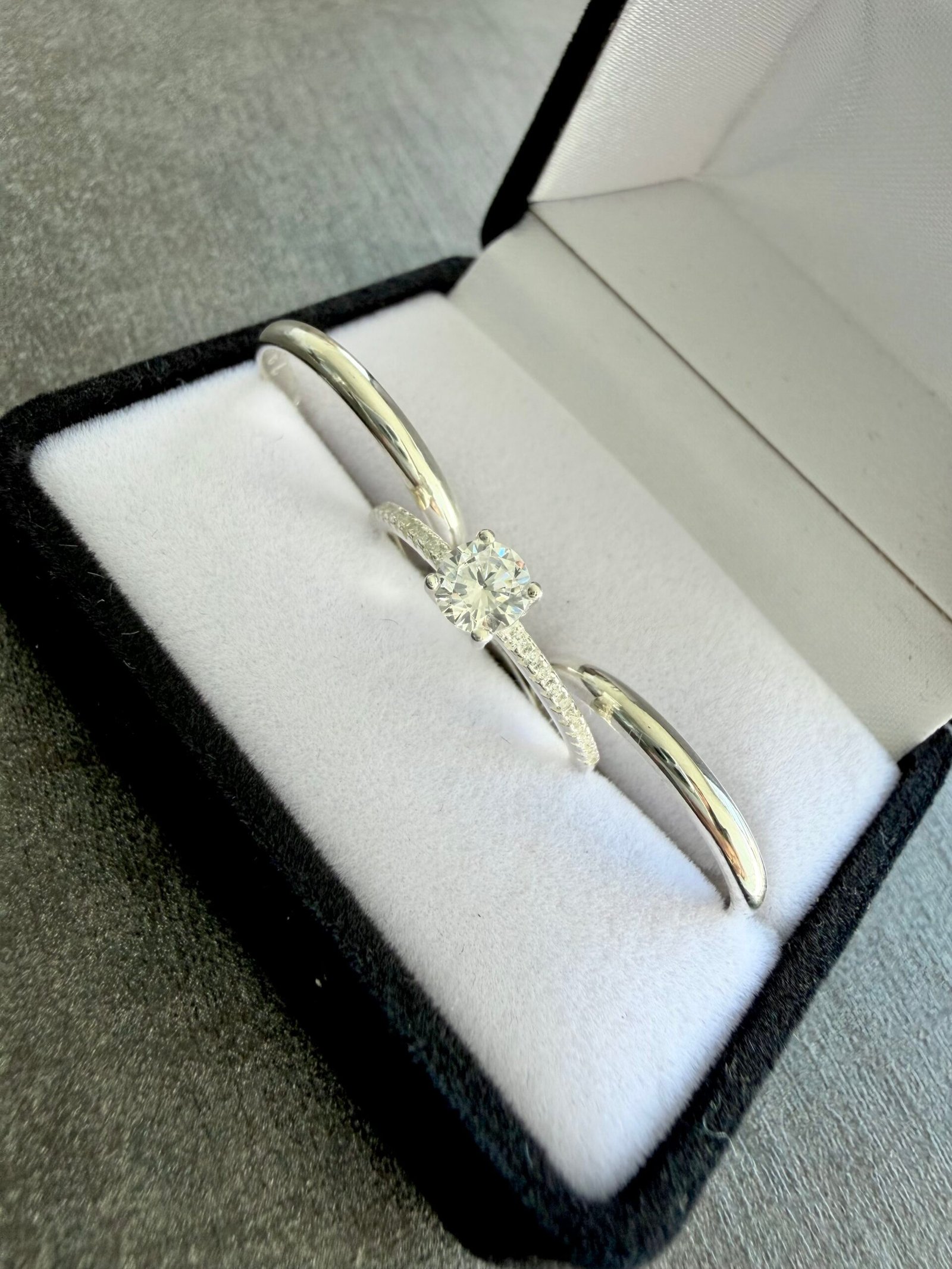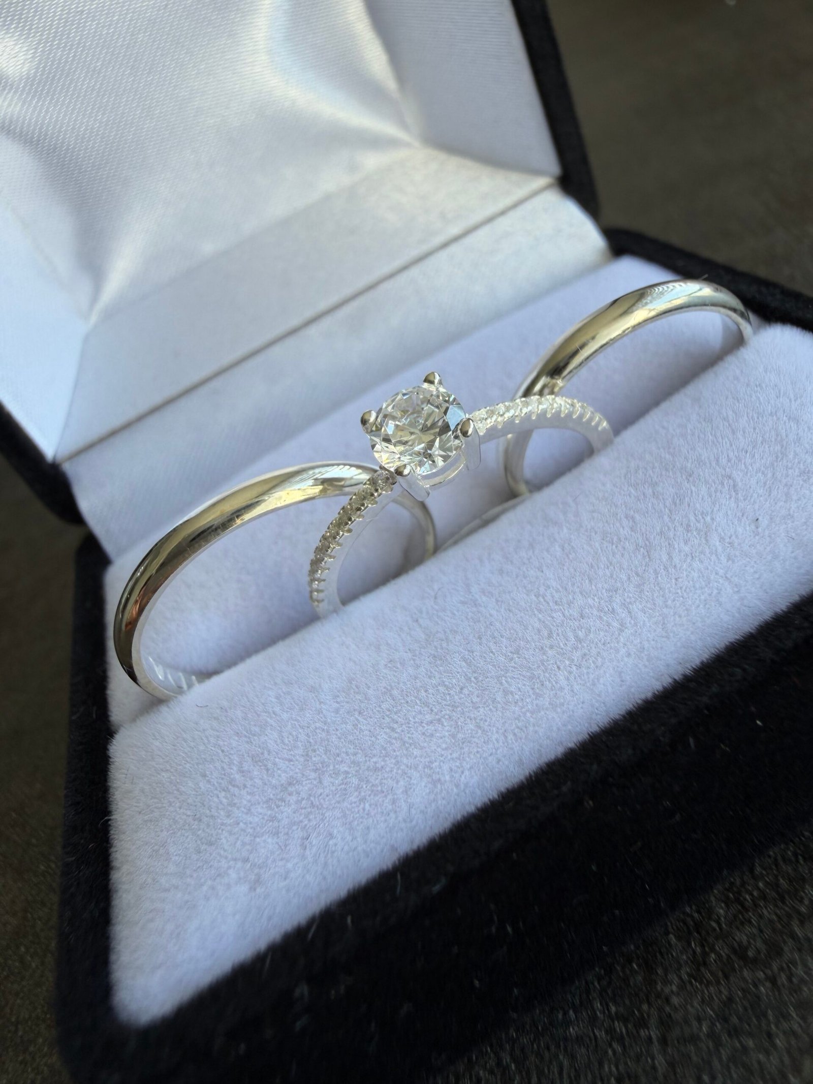 El valor publicado corresponde al par de alianzas (ancho aprox 2 mm) + cintillo. Modelo de cintillo sujeto a stock, en caso de no haber disponibilidad se le ofrecerá al cliente un diseño similar.