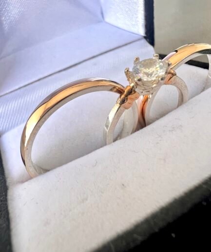El valor publicado corresponde al par de alianzas + cintillo. Modelo de cintillo sujeto a stock, en caso de no haber disponibilidad se le ofrecerá al cliente un diseño similar.